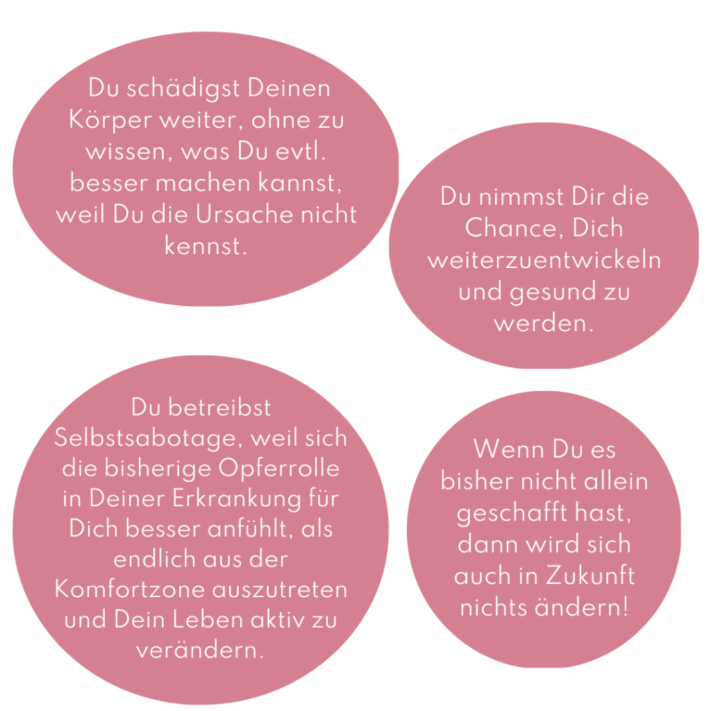 Erörterung systemischer Hintergründe: z.B. Warum bin ich krank, ggf. Opferrolle auflösen